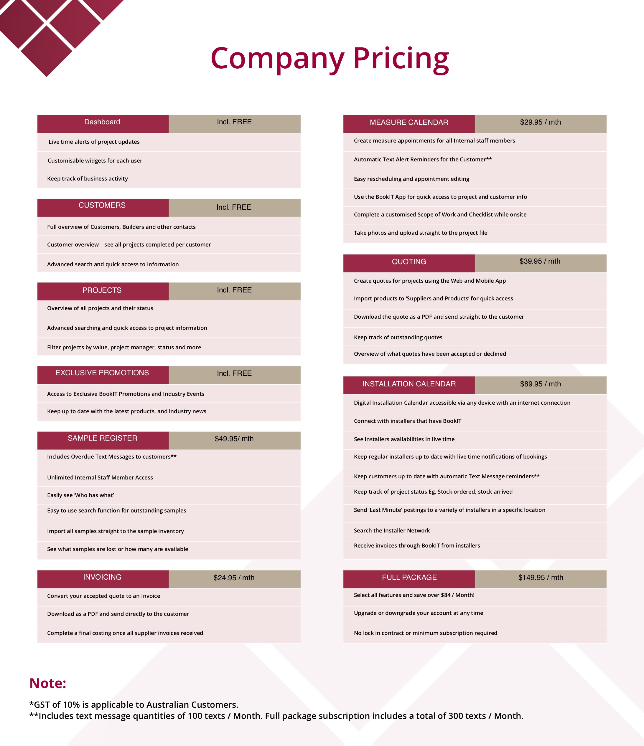 To discuss your specific requirements please contact the BookIT team. We can tailor a package to suit your business needs.